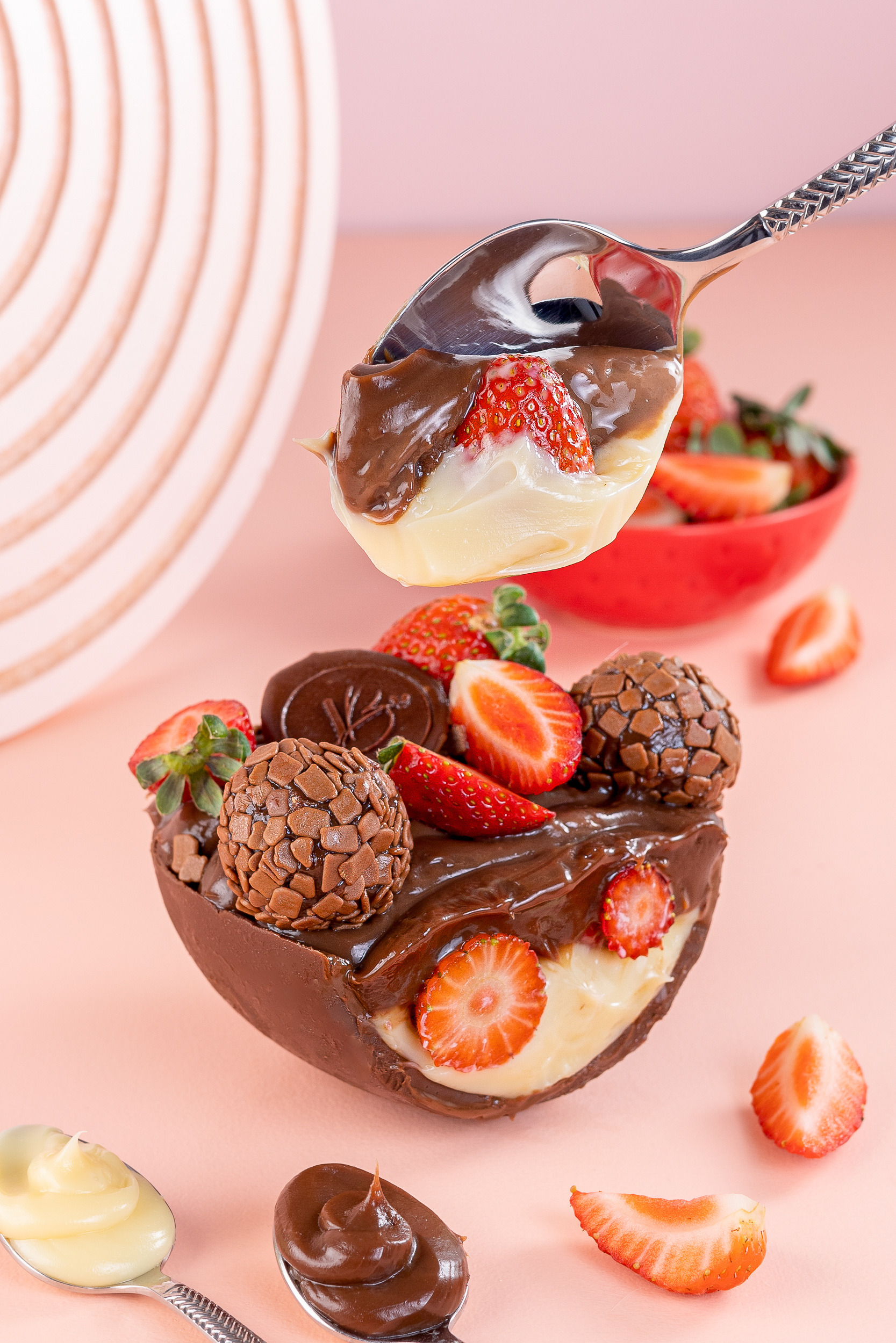 Enviaremos o manual de preparo do produto, mas no geral, doces já são bem fotogênicos e você pode seguir a produção natural, com mais cuidado aos detalhes. Caso haja necessidade, o foodstyling é feito nas fatias e colheradas.