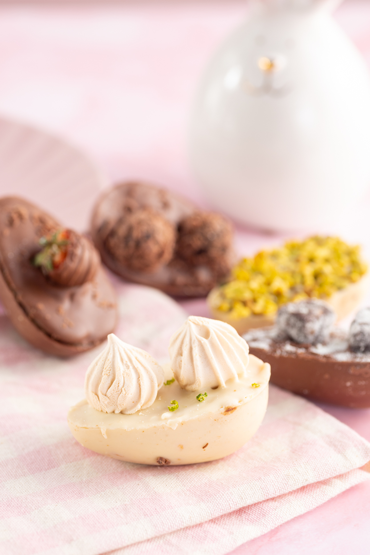 Uma sessão de fotos de páscoa fofa e cor de rosa.