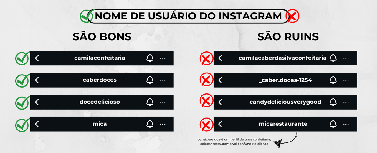 O ideal é que ele seja fácil de memorizar, se conecte com o público alvo, seja em português, sem muitos caracteres especiais, como pontos (.) e underlines (_) e quanto mais curto, melhor; afinal queremos que os possíveis clientes não encontrem objeções para te seguir.